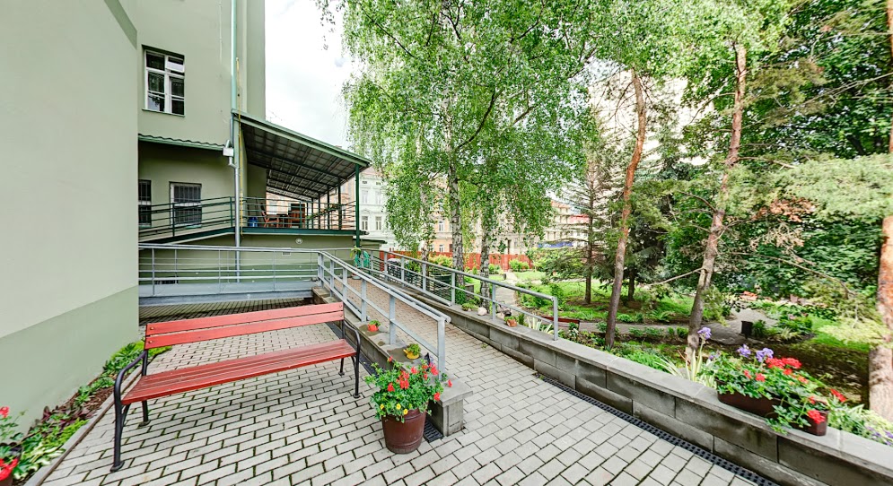 Je situován v městské zástavbě s vlastní malou zahradou a je plně bezbarierový. Součástí objektu je pobytová terasa, společenské odpočinkové místnosti s televizí atd.