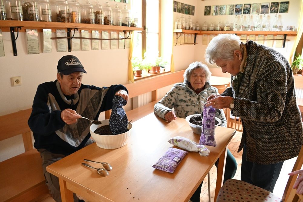 Následně si klienti udělali hřejivý pohankový polštářek. Nakonec nás čekala vazba podzimní kytičky a pečení jablečného závinu.