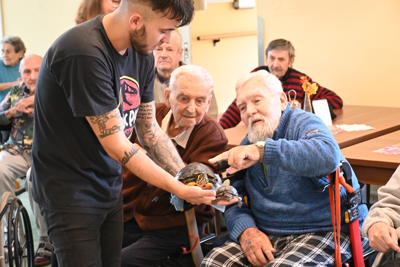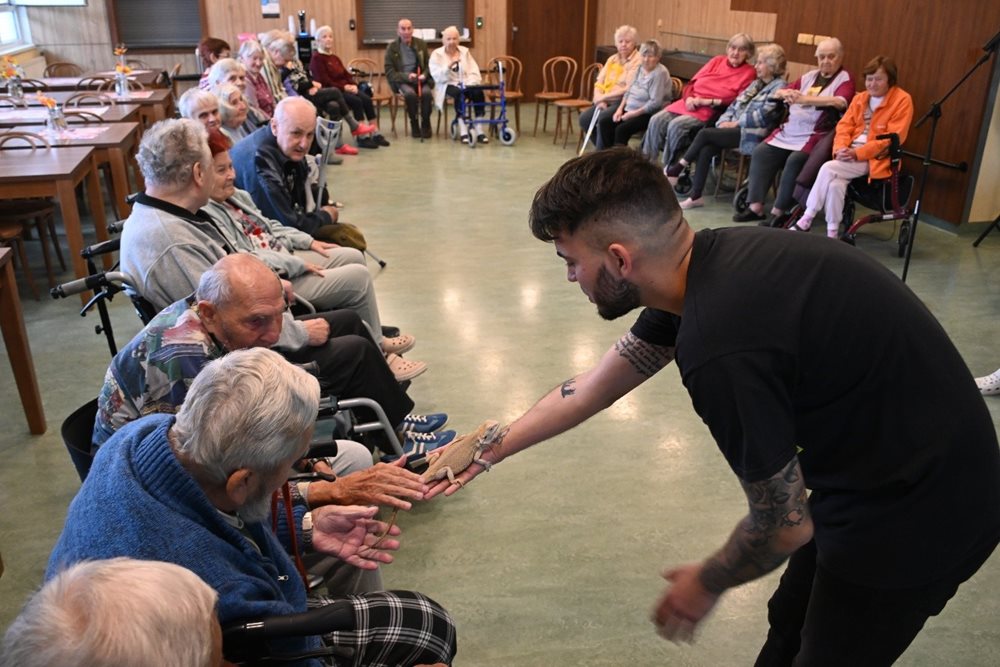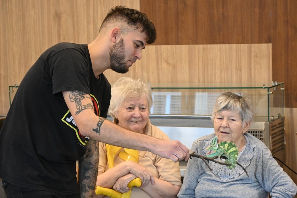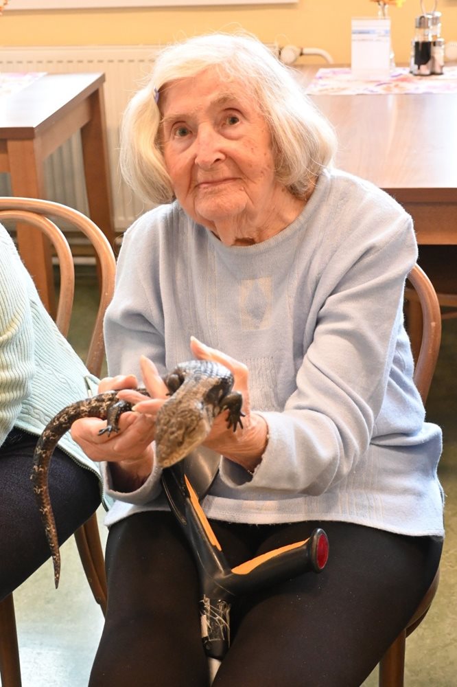 Byli jsme velmi překvapení, že téměř všichni klienti se vůbec nebáli a zvířata si pohladili. Klienti se mohli naživo seznámit s chameleonem, agamou vousatou, tilikvou obrovskou (obě dvě jsou velké ještěrky), varanem stepním, želvou a ježkem bělobřichým. Pan Filípek trpělivě odpovídal na všechny dotazy našich klientů. Pro velký zájem o tuto přednášku, pozveme pana Filípka i v příštím roce.
