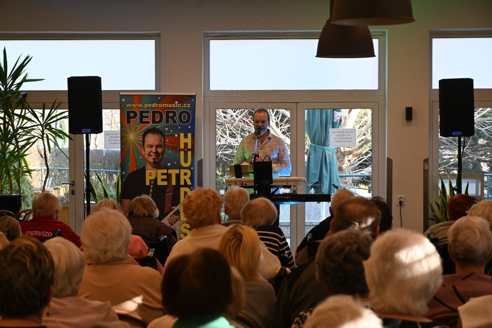 Petr Hurdes, známý svou láskou k hudbě a umění, měl pro seniory připravený pestrý program. Vystoupil s klávesami, které se staly jeho věrným společníkem při podání skvělých hudebních zážitků. Repertoár zahrnoval jak známé české hity, tak i různé skladby z oblasti folk a dechovky, které si mnozí návštěvníci rádi pamatovali. Jeho melodický hlas, schopnost vcítit se do atmosféry a přirozený šarm okamžitě vytvořily příjemnou a uvolněnou atmosféru, díky které se hosté cítili pohodlně a zapojili se do zpívání.