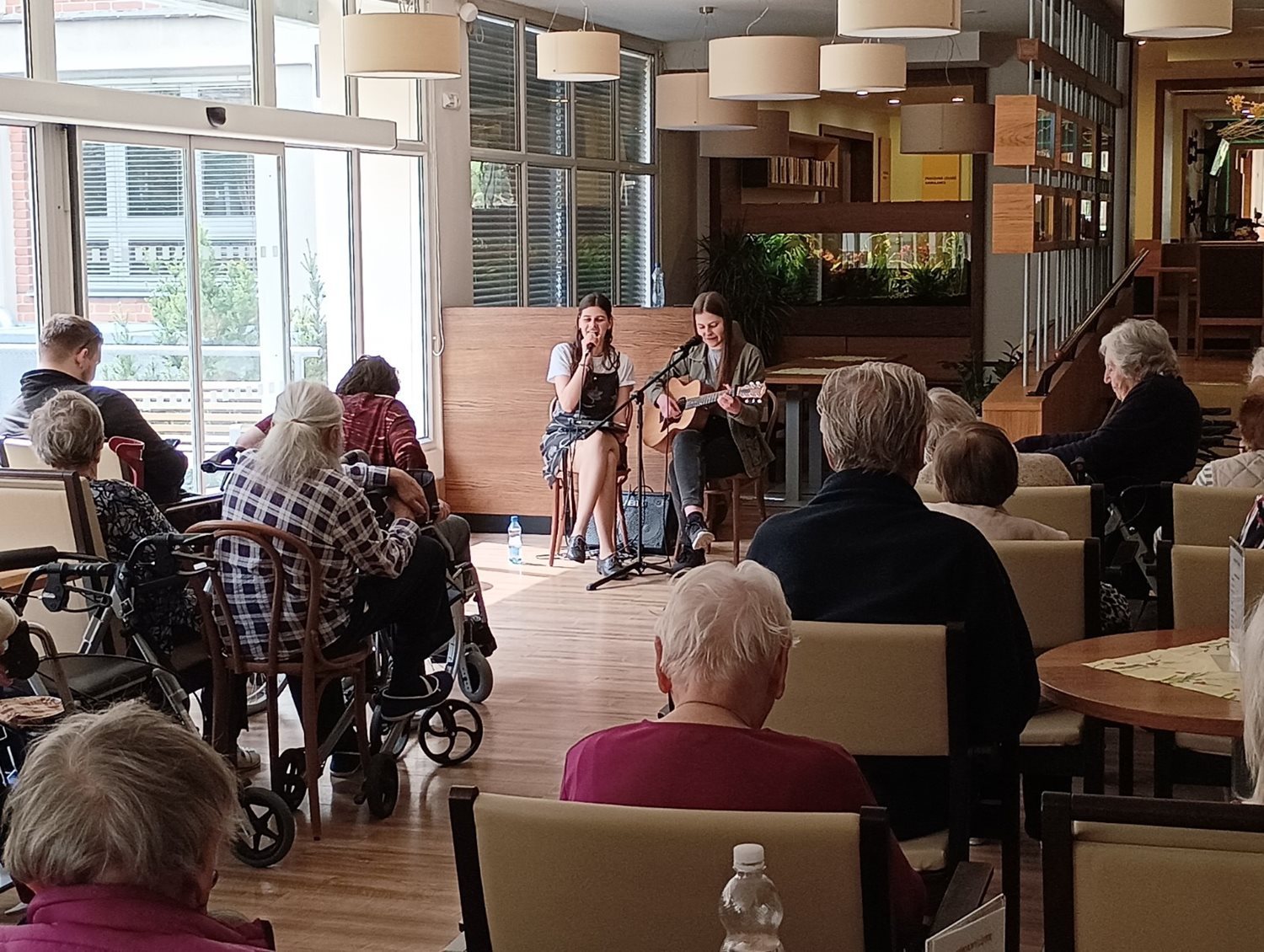 Máme radost, že nám výborně funguje spolupráce s brněnskými vysokými školami! Opět nás přišly navštívit studentky z vysoké školy pod organizací Mise naděje, aby nám zahrály na kytaru a zazpívaly. Naši klienti mají hudbu moc rádi a společně se studentkami si zazpívali známé písně. Pár fotografií přikládáme níže.