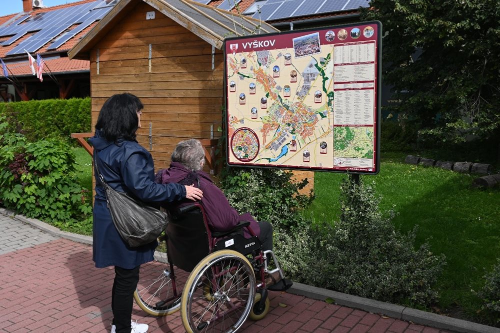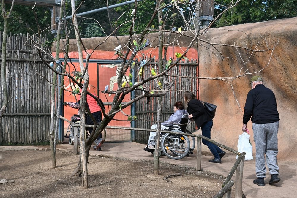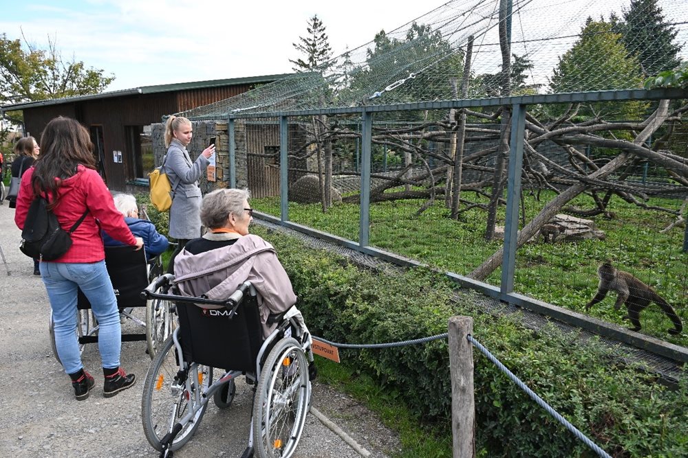 Dne 21. 9. se část našich klientů podívala do zoo. A ne ledajaké! Autobusem jsme jeli do Zooparku Vyškov, kde je k vidění několik desítek domestikovaných zvířat z celého světa. Rovněž počasí bylo jak na objednávku, nastalo typické babí léto! V příjemném slunečním počasí jsme tak zhlédli velbloudy, skoty, opice, ale nechyběly i nám známé druhy zvířat od morčat, králíků, po různé slepice. Na naučných tabulích jsme se rovněž dozvěděli spoustu zajímavostí. Věděli jste například, že pes dingo patří mezi největší predátory Austrálie, opice malpa dokáže otevřít zašroubovanou lahev, kůň převalského je jediný žijící předek našeho zdomácnělého koně? Velkou předností zoo je určitě bezbariérový vstup do mnoha obydlí zvířat, což se mnoha klientům líbilo, protože zvířata mohli pozorovat bez nějakých překážek. Klokana nebo andulky jsme si tak mohli prohlédnout z bezprostřední blízkostí. Příjemným zpestřením bylo i krmení koz. Pomyslnou sladkou tečkou byl oběd, v restauraci přímo u zooparku, který všem moc chutnal.