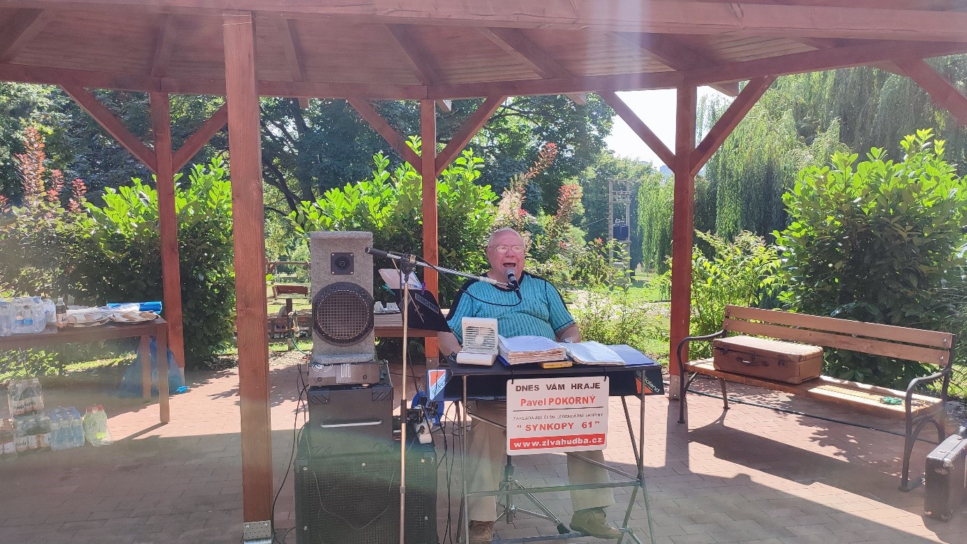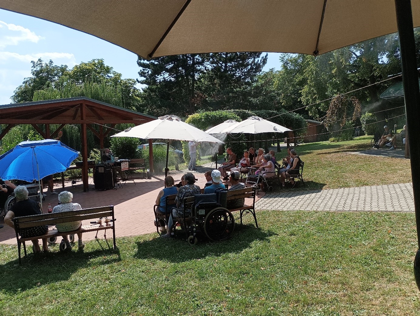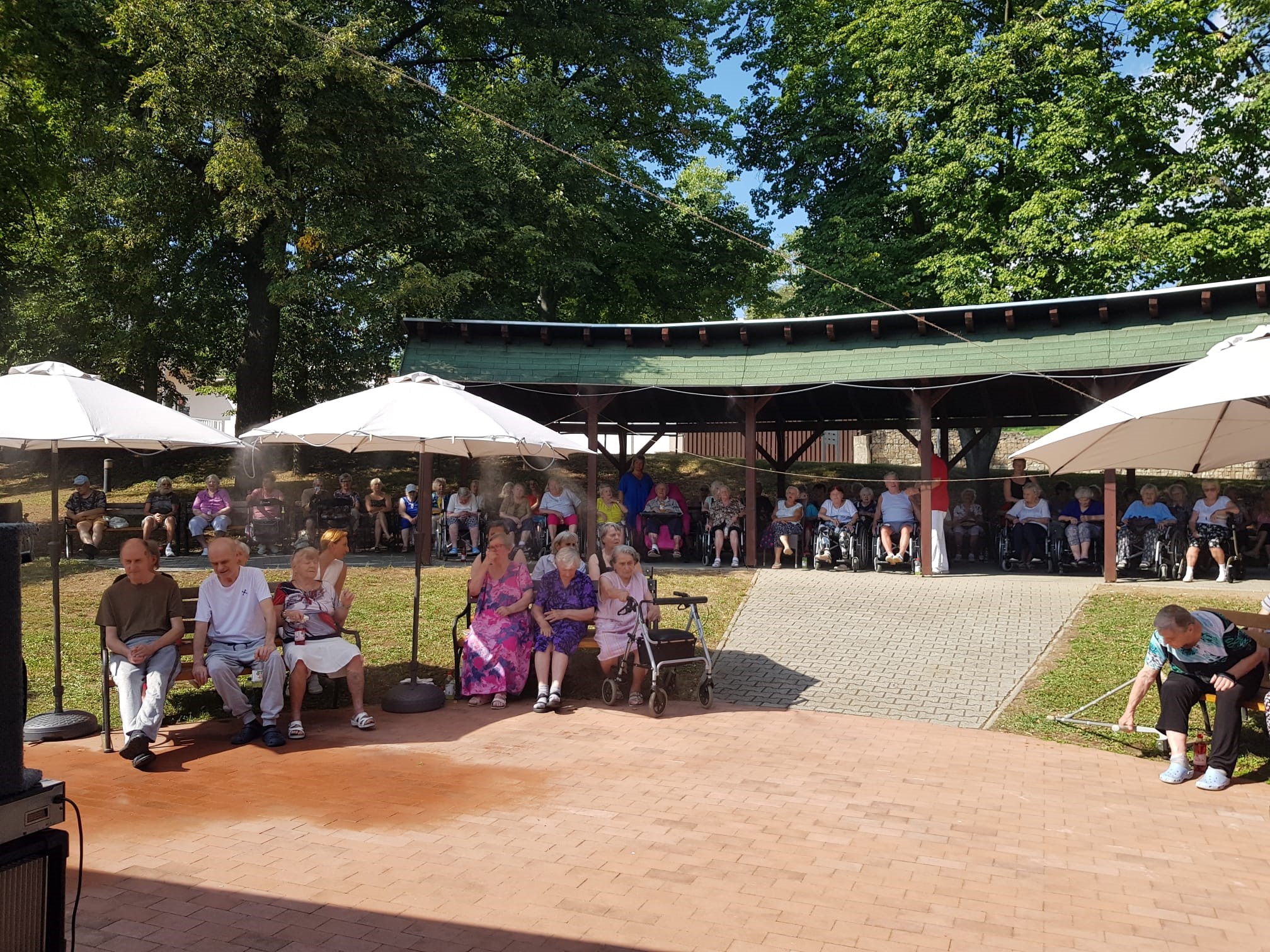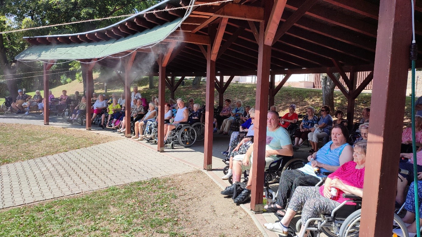 Dne 23. srpna jsme uspořádali v naší zahradě letní zahradní slavnost. K poslechu nám přijel zazpívat pan Pokorný ze skupiny Synkopy 61. Jelikož bylo krásné počasí, byli jsme rádi, že můžeme akci uspořádat venku. Pro pohodu a příjemné klima jsme zakoupili vodní mlhu, která osvěžovala vzduch i naše klienty. Klienti si akci užili a někteří i tancovali. Pár fotografií přikládáme níže.