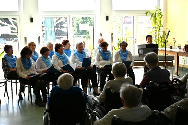 Dámy, oděné do stylových modrých šátků, přinesly s sebou nejen radost a energii, ale především krásné lidové a brněnské písně, které rozezpívaly nejen je, ale i naše obyvatele. Zazněly známé melodie, které potěšily srdce, a nejedno oko při vzpomínkách zvlhlo dojetím.