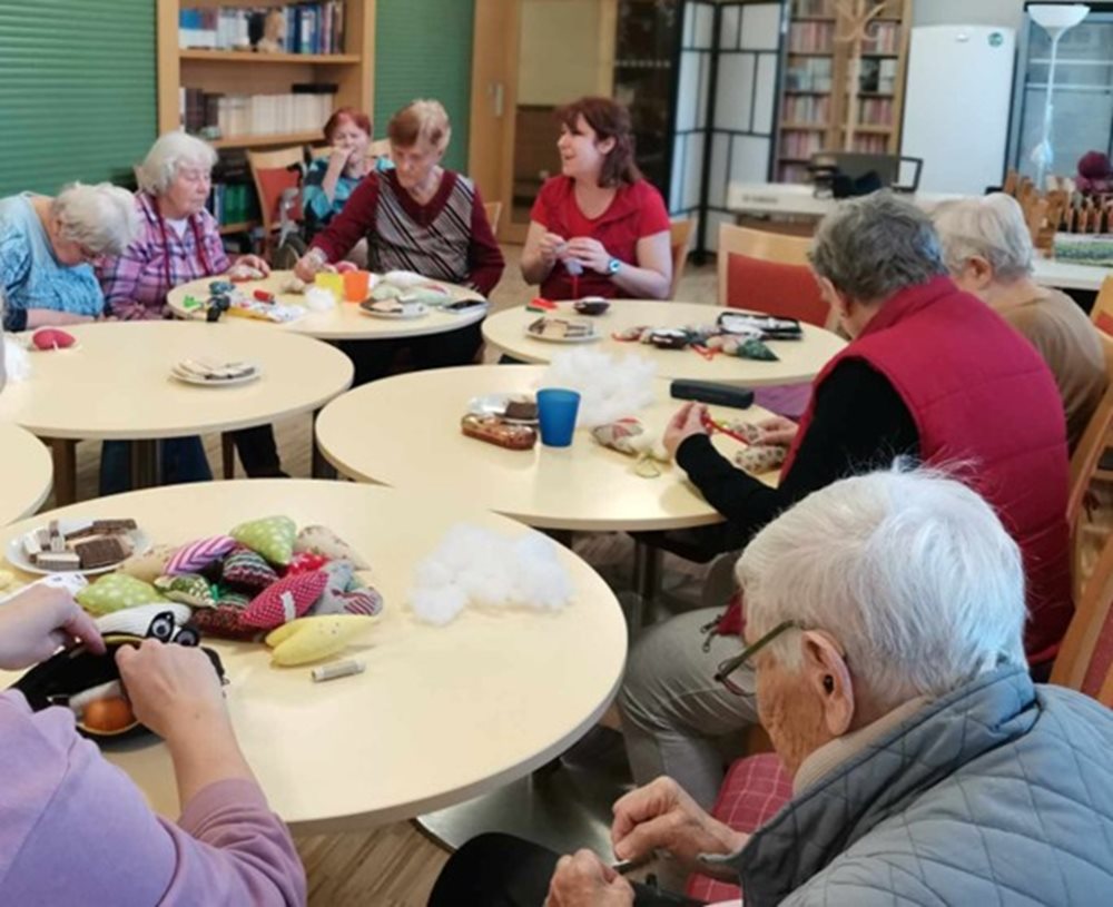 V rámci setkání si účastníci vyzkoušeli výrobu látkových srdíček, což byla nejen skvělá příležitost pro seniory, jak se zapojit do kreativní činnosti, ale také možnost naučit se nové techniky a získat inspiraci od zkušených členů patchworkového klubu. Pod vedením těchto šikovných žen se klienti domova mohli ponořit do příjemné atmosféry tvoření, která byla plná smíchu, vzájemného sdílení zkušeností a radosti z tvoření.