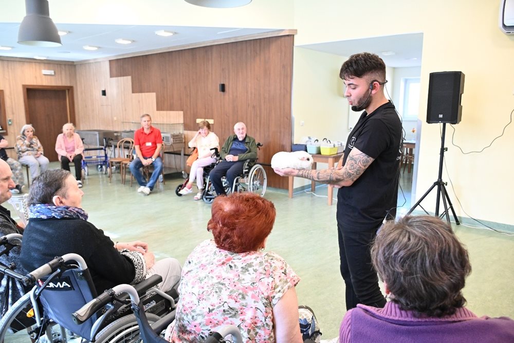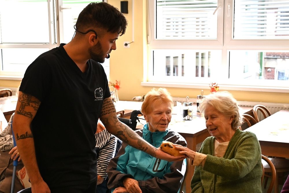 V pátek 17. října 2025 se v dopoledních hodinách v jídelně našeho Domova pro seniory Kociánka uskutečnilo milé a poučné setkání věnované chovu morčat.