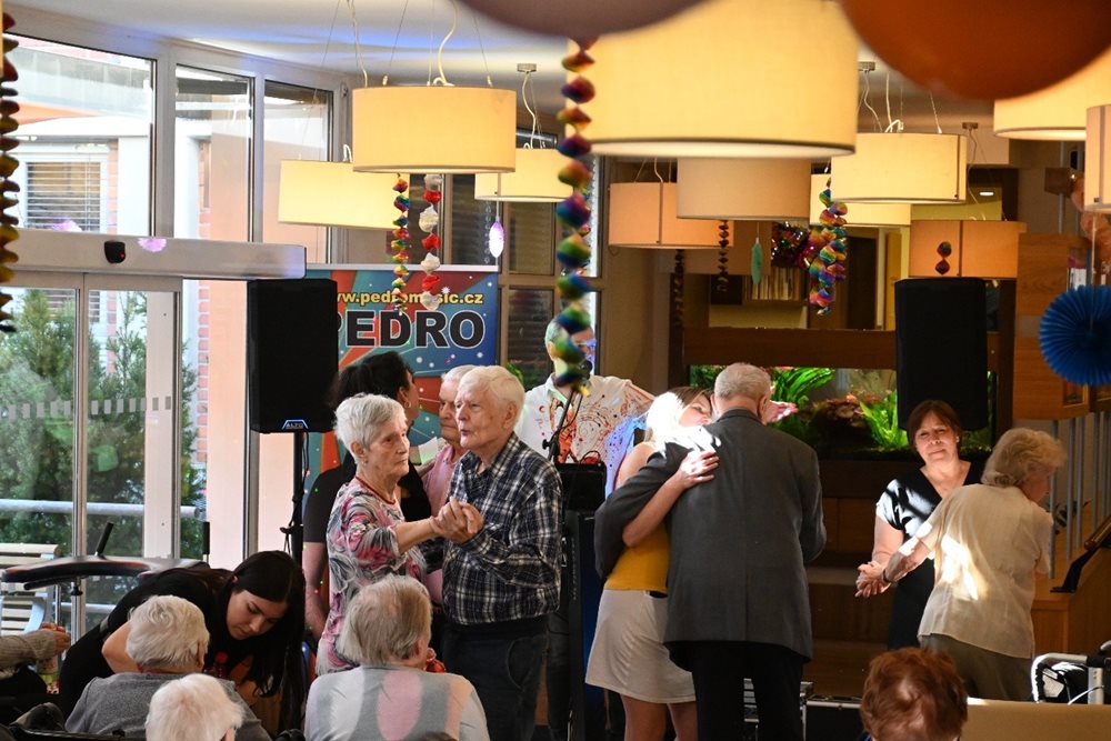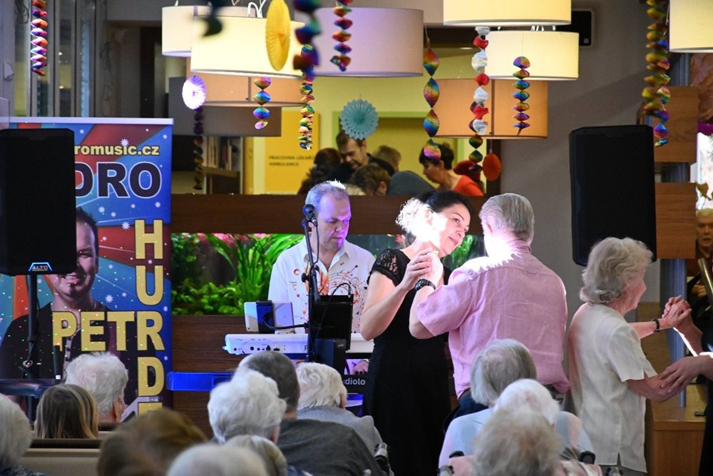 Atmosféra byla od samého začátku velmi srdečná a slavnostní. Klienti domova i zaměstnanci si užili chvíle plné hudby, tance a radosti ze společného setkání. K poslechu i tanci hrál oblíbený zpěvák Pedro Hurdes, který svým vystoupením vytvořil výbornou náladu a rozezpíval nejednoho účastníka plesu. Na parketu se postupně vystřídalo mnoho tanečníků a nechyběly ani známé melodie, které si všichni s chutí zazpívali.