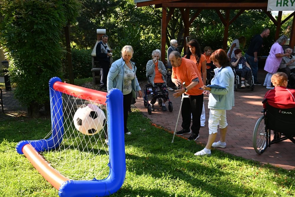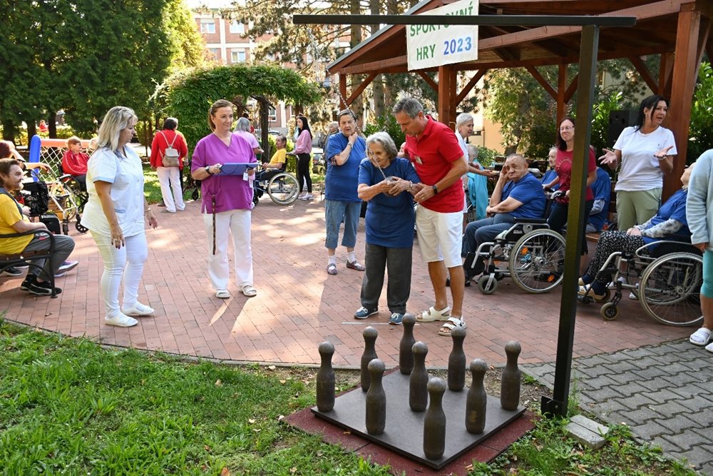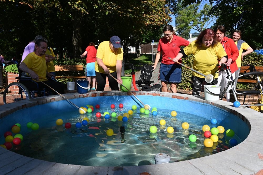 Klienti soutěžili v pěti disciplínách přizpůsobených jejich pohybovým možnostem - střelba na branku, ruské kuželky, hod míčkem do koše, lovení balónků a hod koulí do terče.
