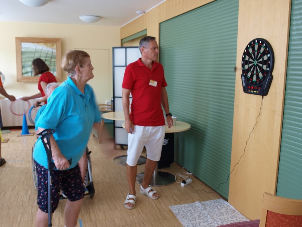 Kvůli špatnému počasí byl turnaj přestěhován do vnitřních prostor našeho domova. Dvě družstva utvořili klienti z Kociánky a jedno družstvo klienti ze střediska Štefánikova. Soutěžilo se v hodu šipkami na terč, v hodu kruhy na kužele a v kuželkách. Zvítězilo družstvo z Kociánky ve složení: pan Rubínek, pan Maixner, paní Sládková, paní Kudzbelová a paní Čermáková. Na druhém místě se umístilo družstvo ze střediska Štefánikova a třetí bylo další mužstvo z Kociánky. Všichni si dopoledne velice užili a již se těší na další sportovní den.