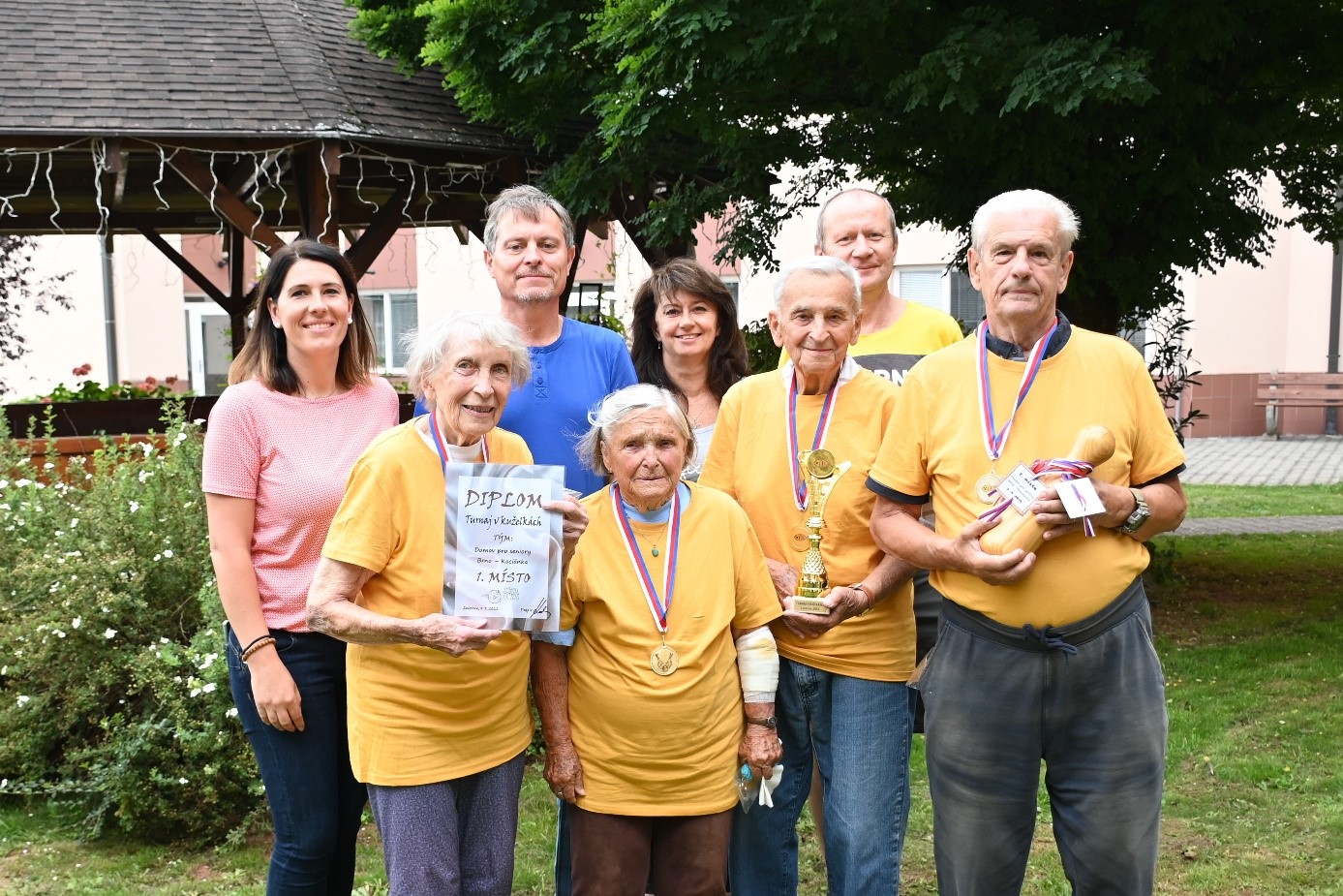 Vyhlášení výsledků probíhalo po vynikajícím obědě. Klienti s aktivizačními pracovníky celé léto poctivě trénovali a po zásluze získali 1. místo! Měli jsme všichni nepopsatelnou radost! Dále se umístili klienti z DS Předklášteří a DS Sokolnice.