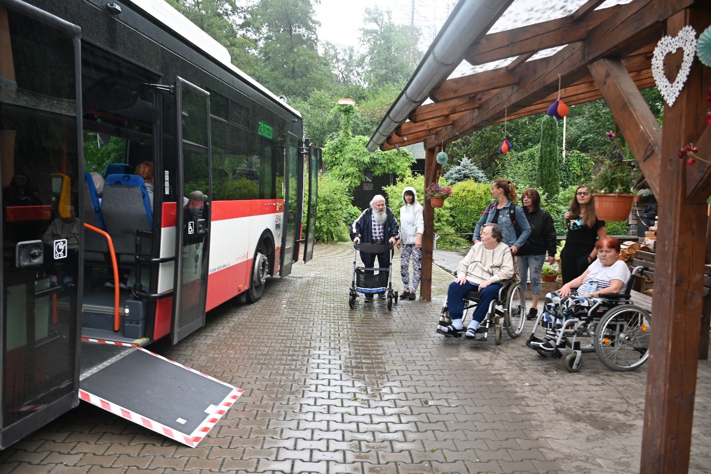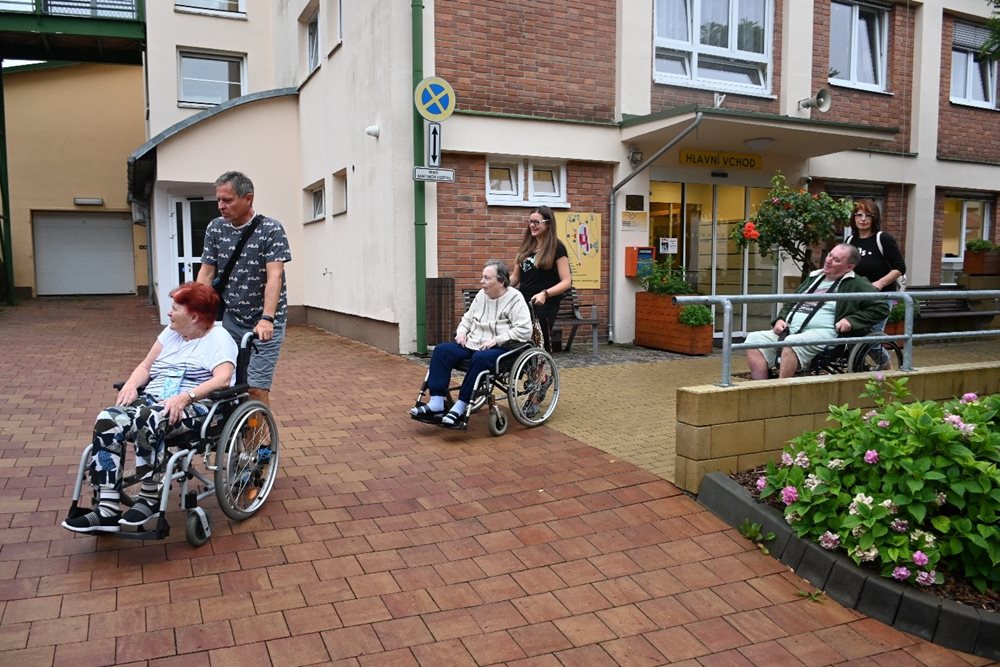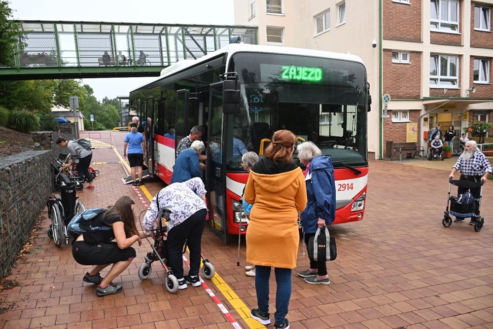 Výletu se zúčastnilo 5 klientů trvale odkázaných na invalidní vozík a 16 klientů se sníženou schopností chůze s oporou, a také 5 klientů ze střediska Štefánikova.