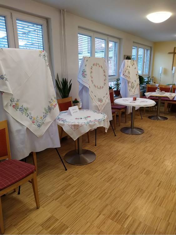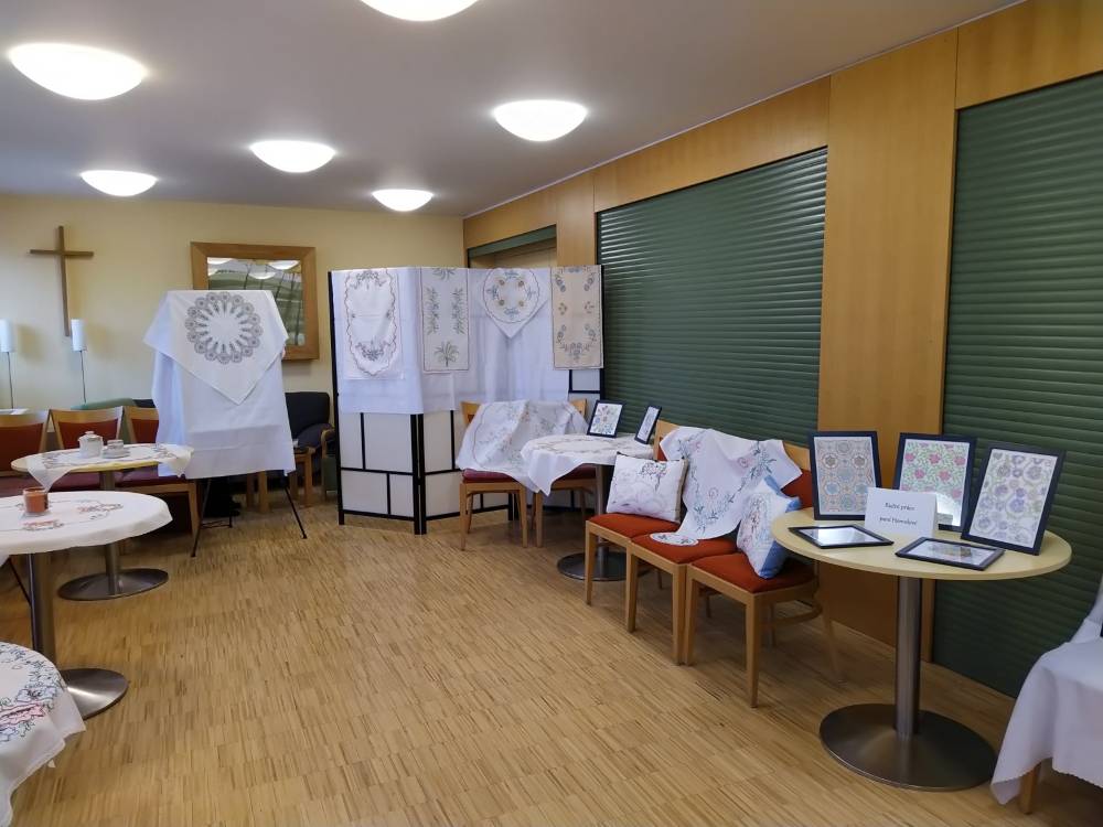 V pátek 1. dubna jsme uspořádali výstavu ručních prací našich klientů. Na výstavě bylo možné zhlédnout vyšívané ubrusy a dečky, malované mandaly a v neposlední řadě také ručně vyráběné zmenšeniny domečků.