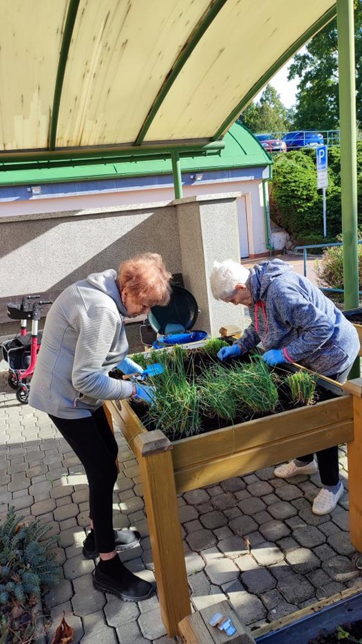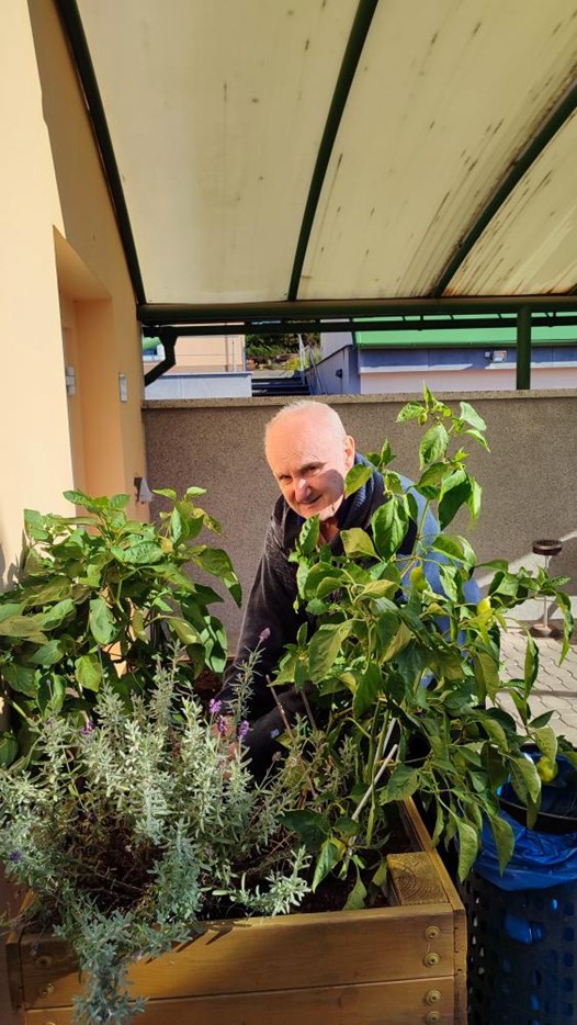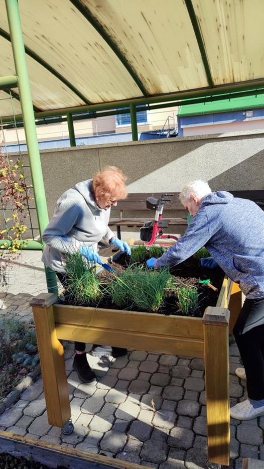 Zahradní terapie je pro naše klienty nejen užitečnou pohybovou aktivitou, ale také formou relaxace a odpočinku na čerstvém vzduchu. Přináší radost ze společné práce i ze zlepšování prostředí, ve kterém tráví svůj čas.