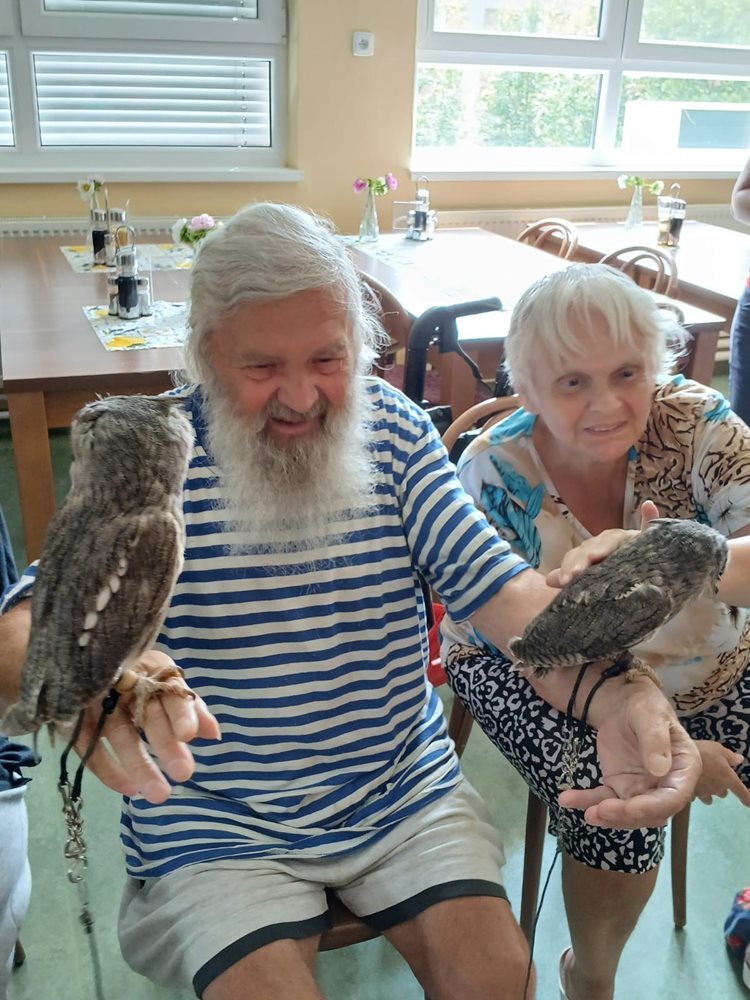 Chovatelka nám o nich pověděla, čím se stravují, jak se chovají a jaké je jejich domácí prostředí a další zajímavosti o nich. Poté si mohli každý z klientů sovičku pohladit a vyfotit se s nimi.